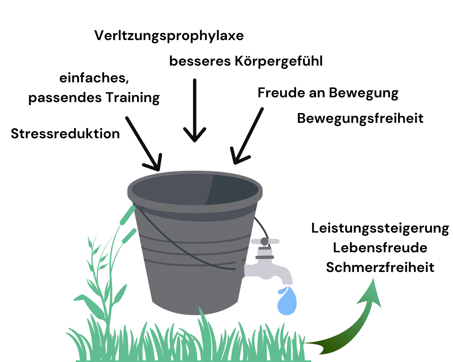Schmerz ist das stärkste Aktionssignal, das wir haben. Es zeigt uns, dass wir etwas an unserer Situation verändern sollen. Schmerz entsteht im Gehirn, je nach dem wie "sicher" wir uns fühlen, wie gut unsere bewegungssteuernden Systeme (visuelles System, vestibuläres System, propriozeptives System) funktionieren und wie voll unser innerer Stresseimer ist. Gerade bei chronischen, langanhaltenden Schmerzen ist es wichtig herauszufinden, welcher Anteil in Deinem Eimer überwiegt und mit welchen Übungen dein Nervensystem mehr Sicherheit gewinnt.